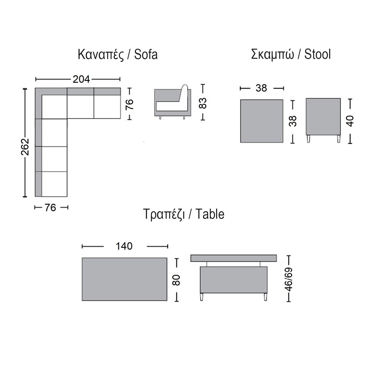 2τεμ Σκαμπό: 38x38x40cm