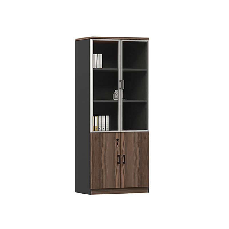ADVANCE Βιβλιοθήκη Γραφείου, 3 Ράφια Πόρτες Γυαλί, Ντουλάπι, Απόχρωση Σκούρο Καρυδί - Γκρι Ε-00022212 ΕΟ825