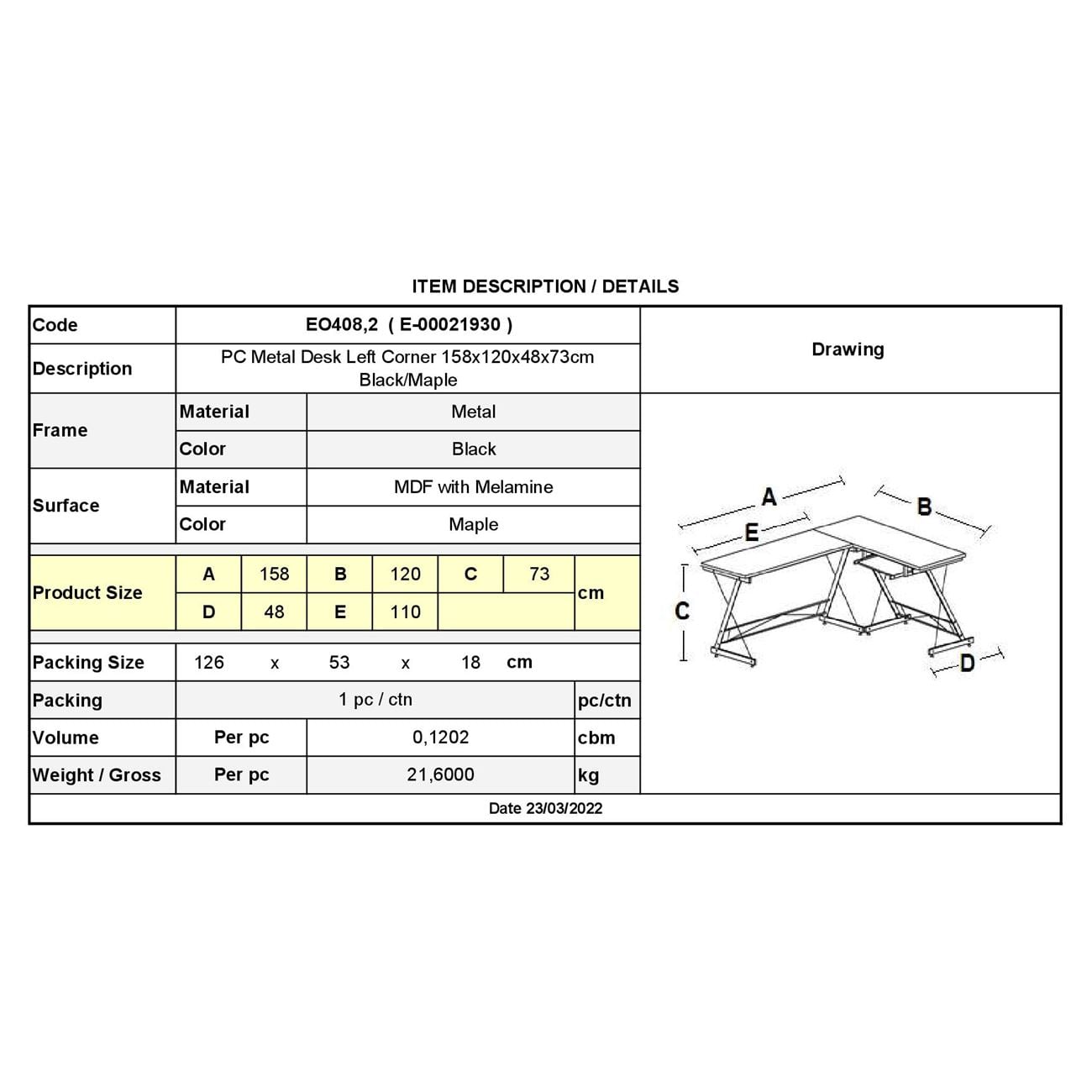 ΓΡΑΦΕΙΟ Η/Υ Γωνία, Μέταλλο Βαφή Μαύρο, Επιφάνεια Απόχρωση Maple Ε-00021930 ΕΟ408,2