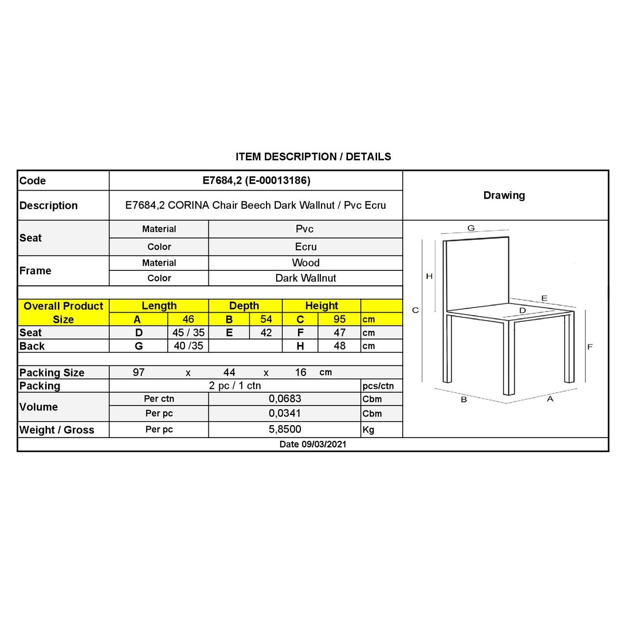 CORINA Καρέκλα Κουζίνας Τραπεζαρίας, Οξiά Απόχρωση Σκούρο Καρυδί, PVC Εκρού Ε-00013186 Ε7684,2 (ΣΕΤ ΤΩΝ 2)
