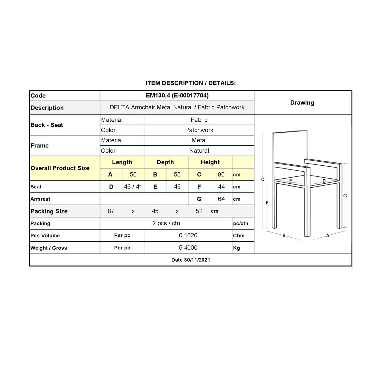 DELTA Πολυθρόνα Μέταλλο Βαφή Φυσικό, Ύφασμα Patchwork Ε-00017704 ΕΜ130,4 (ΣΕΤ ΤΩΝ 2)