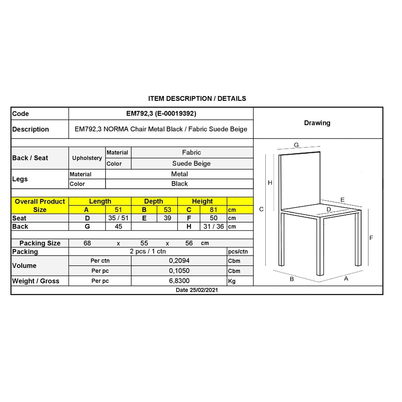NORMA Καρέκλα Τραπεζαρίας Μέταλλο Βαφή Μαύρη, Ύφασμα Suede Μπεζ Ε-00019392 ΕΜ792,3 (ΣΕΤ ΤΩΝ 2)