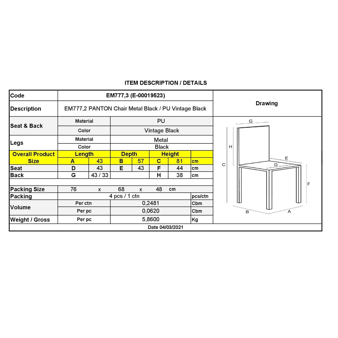 PANTON Καρέκλα Μέταλλο Βαφή Μαύρη, PU Vintage Black Ε-00019523 ΕΜ777,3 (ΣΕΤ ΤΩΝ 4)