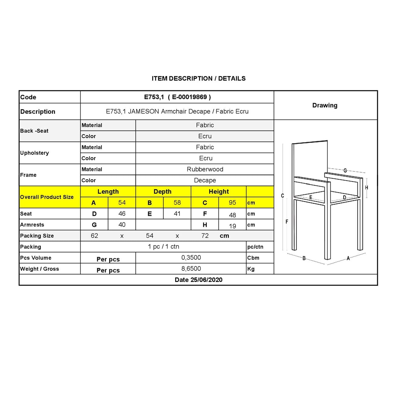 Διαθέσιμο από 4-10 ημέρεςJAMESON Πολυθρόνα Σαλονιού / Καθιστικού / Τραπεζαρίας