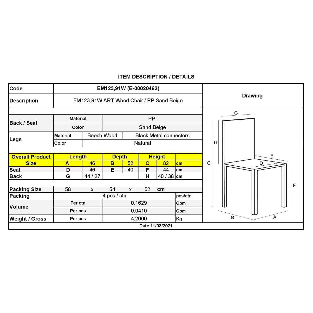 Διαθέσιμο από 4-10 ημέρεςΕΜ123,91W ART Wood Καρέκλα PP Sand Beige