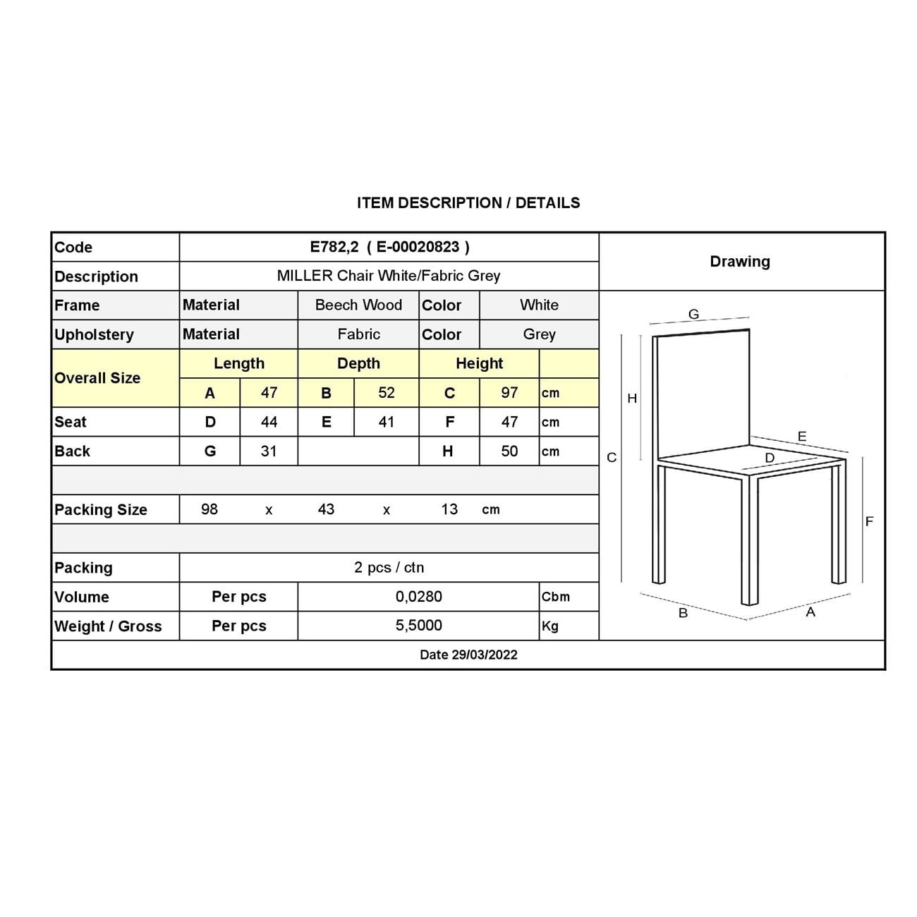 MILLER Καρέκλα Οξιά Άσπρο, Ύφασμα Γκρι Ε-00020823 Ε782,2 (ΣΕΤ ΤΩΝ 2)