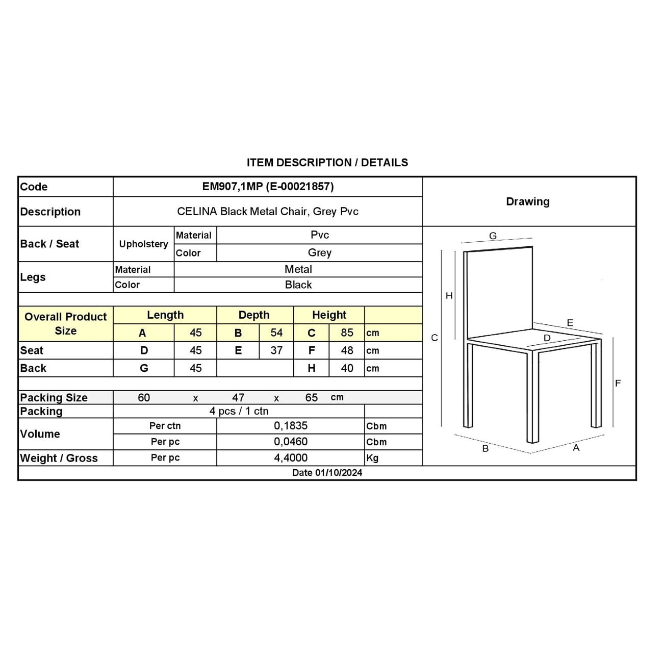 CELINA Καρέκλα Μέταλλο Βαφή Μαύρο, Pvc Γκρι Ε-00021857 ΕΜ907,1ΜP (ΣΕΤ ΤΩΝ 4)