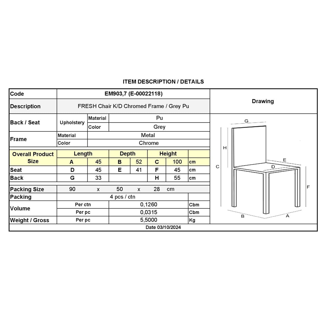 Διαθέσιμο από 4-10 ημέρεςΕΜ903,7 FRESH Καρέκλα K/D Χρώμιο/Pvc Γκρι