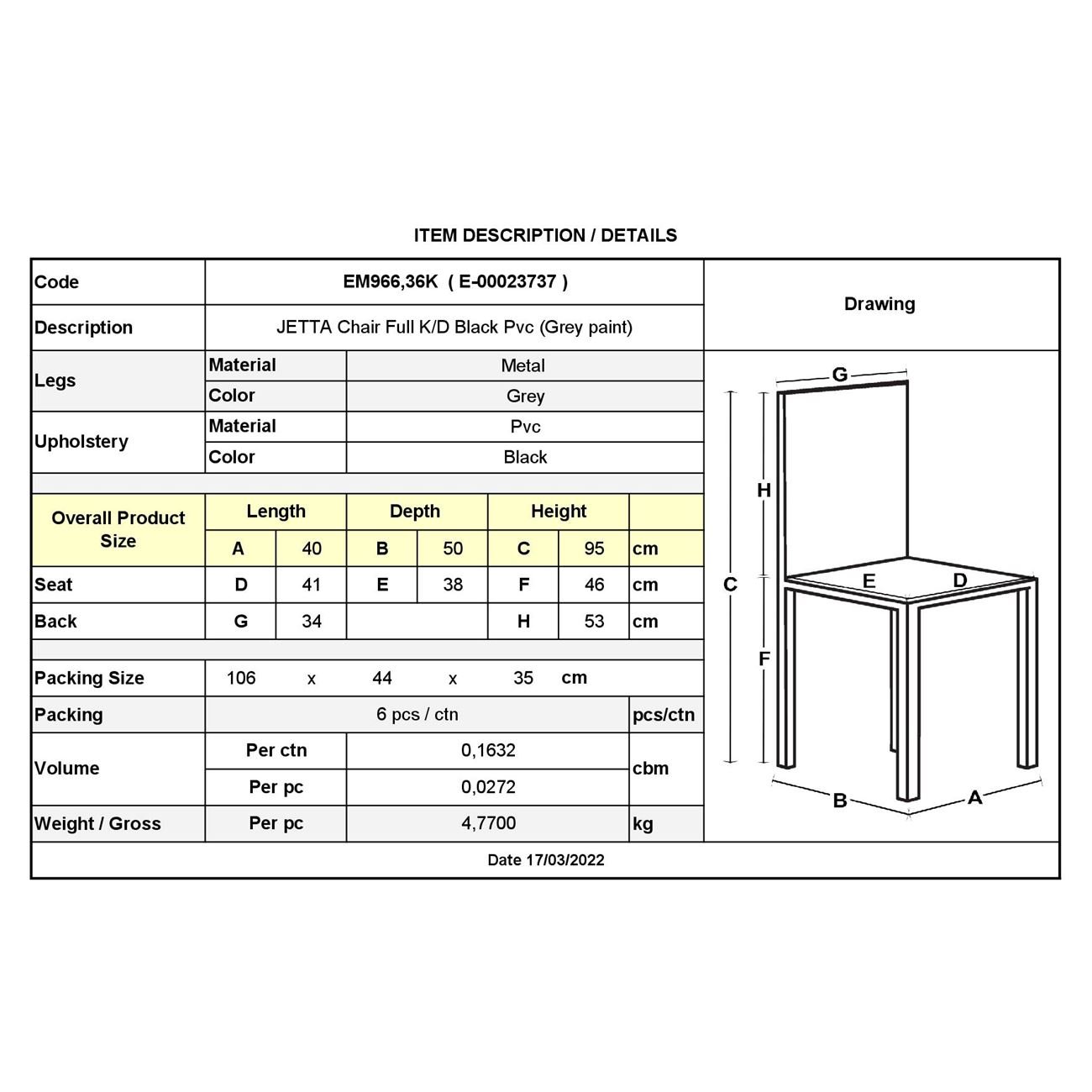 JETTA Καρέκλα Tραπεζαρίας - Κουζίνας, Μέταλλο Βαφή Γκρι, Pvc Μαύρο, Full K/D - Συσκ.6 Ε-00023737 ΕΜ966,36Κ (ΣΕΤ ΤΩΝ 6)
