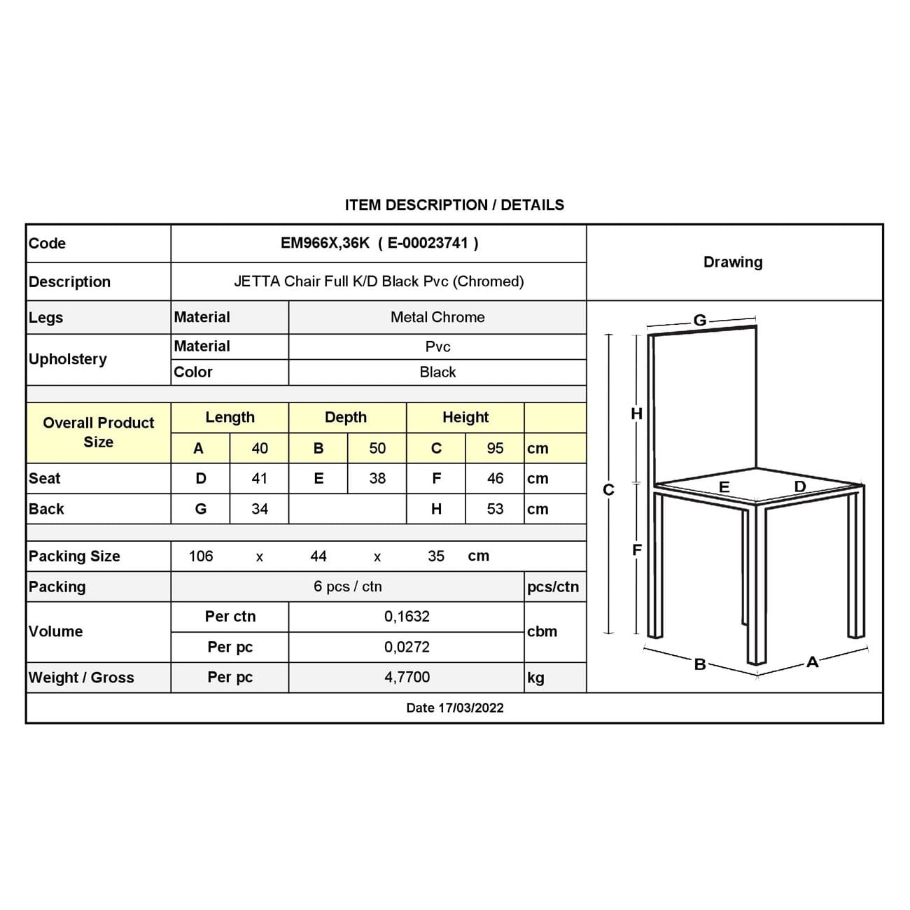 Διαθέσιμο από 4-10 ημέρεςΕΜ966Χ,36Κ JETTA Καρέκλα Full K/D Χρώμιο/Pvc Μαύρο (Συσκ.6)