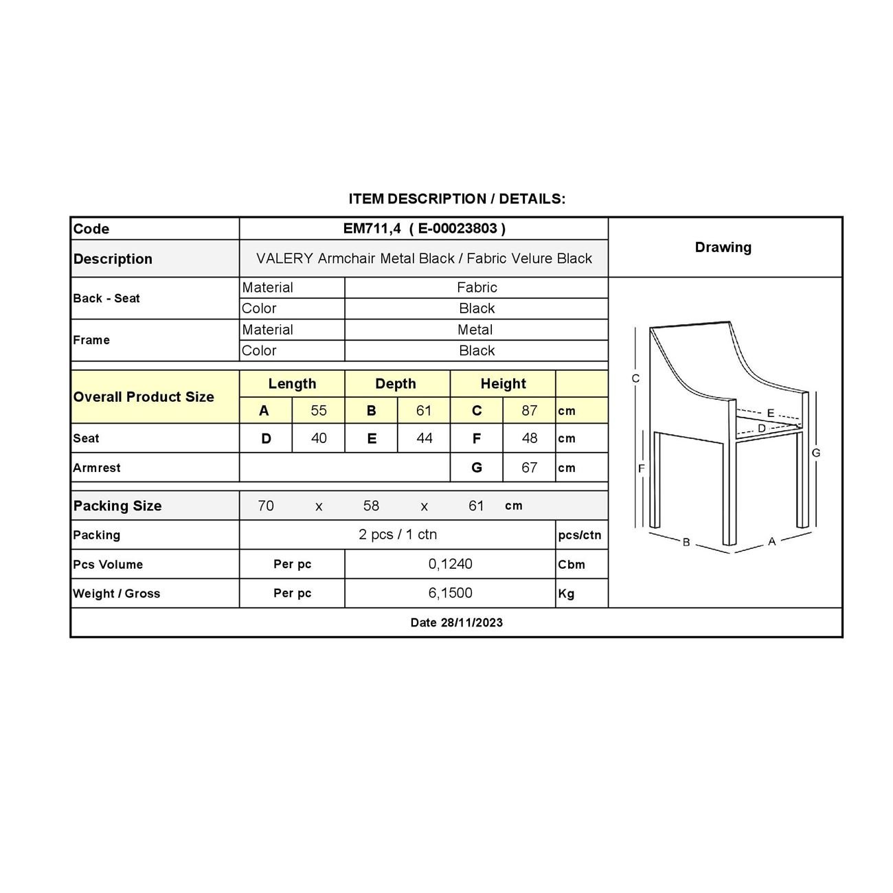 VALERY Πολυθρόνα Μέταλλο Βαφή Μαύρο, Ύφασμα Velure, Απόχρωση Μαύρο Ε-00023803 ΕΜ711,4 (ΣΕΤ ΤΩΝ 2)