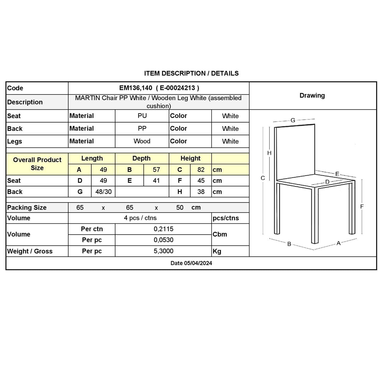 MARTIN Καρέκλα Ξύλο Άσπρο, PP Άσπρο Μονταρισμένη Ταπετσαρία Ε-00024213 ΕΜ136,140 (ΣΕΤ ΤΩΝ 4)