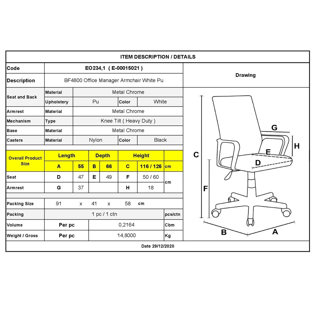 BF4800 Πολυθρόνα Διευθυντή Μέταλλο Χρώμιο - PU Άσπρο Ε-00015021 ΕΟ234,1
