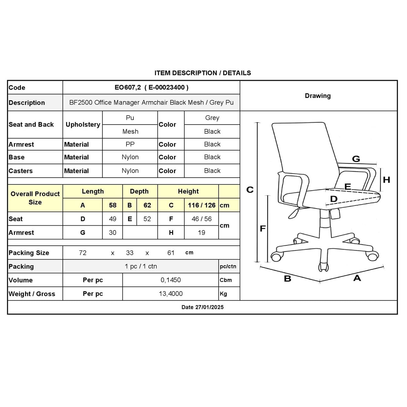 Διαθέσιμο από 4-10 ημέρεςBF2500 Πολυθρόνα Διευθυντή