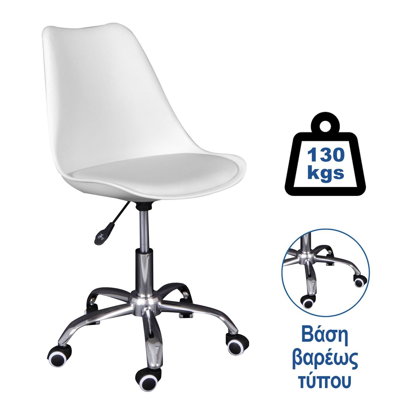 MARTIN Καρέκλα Γραφείου Χρώμιο PP Άσπρο, Κάθισμα: Pu Άσπρο Μονταρισμένη Ταπετσαρία Συσκ.1 Ε-00020002 ΕΟ201,2W