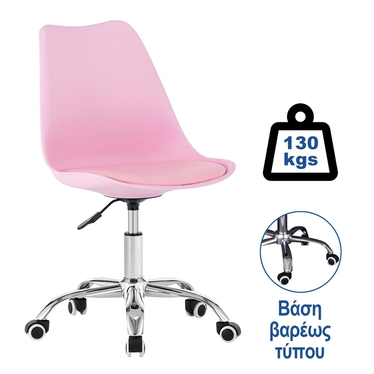 MARTIN Καρέκλα Γραφείου Χρώμιο PP Ροζ, Κάθισμα: Pu Ροζ Μονταρισμένη Ταπετσαρία Συσκ.1 Ε-00023138 ΕΟ201,8W