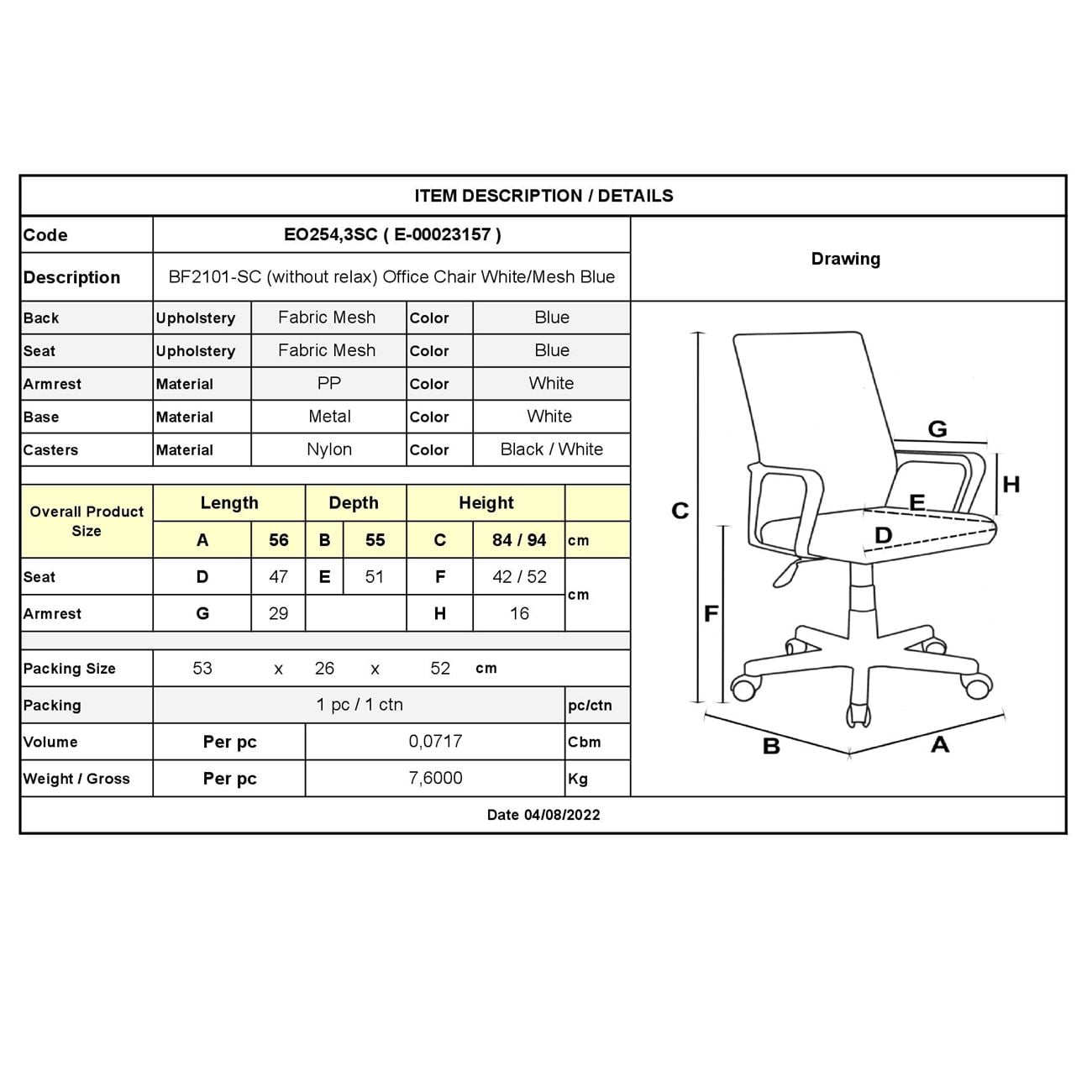 BF2101-SC Πολυθρόνα Γραφείου χωρίς Ανάκλιση Άσπρο - Mesh Μπλε Ε-00023157 ΕΟ254,3SC