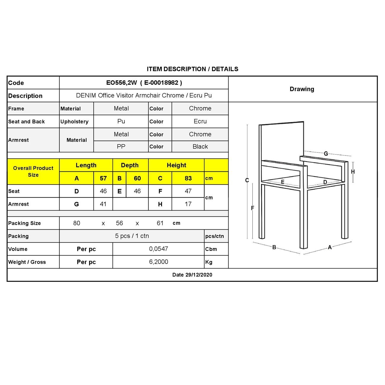 DENIM Πολυθρόνα Γραφείου Επισκέπτη Χρώμιο, Pu Άσπρο Ε-00018982 ΕΟ556,2W (ΣΕΤ ΤΩΝ 5)