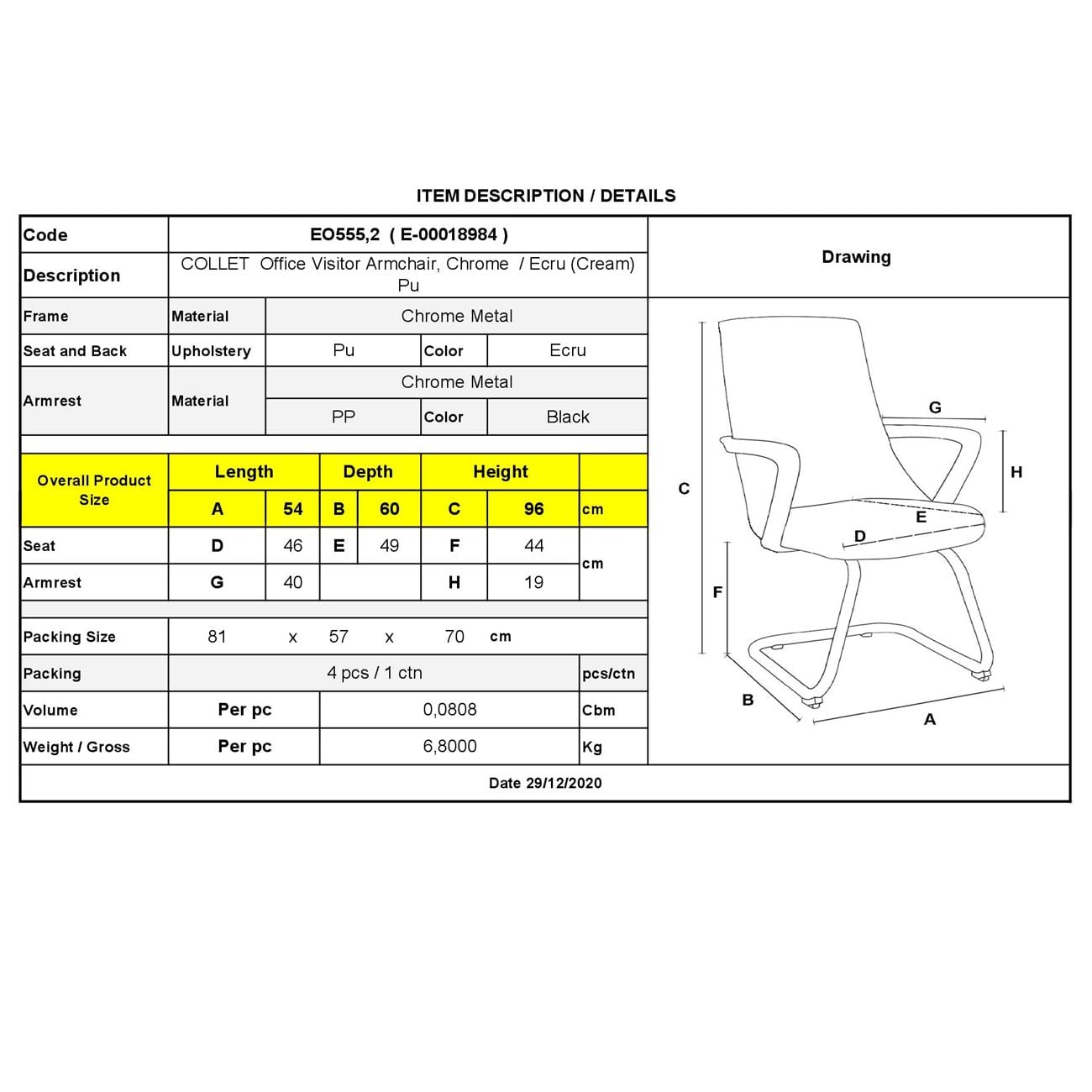 COLLET Πολυθρόνα Γραφείου Επισκέπτη Μέταλλο Χρώμιο, Pu Εκρού Ε-00018984 ΕΟ555,2 (ΣΕΤ ΤΩΝ 4)