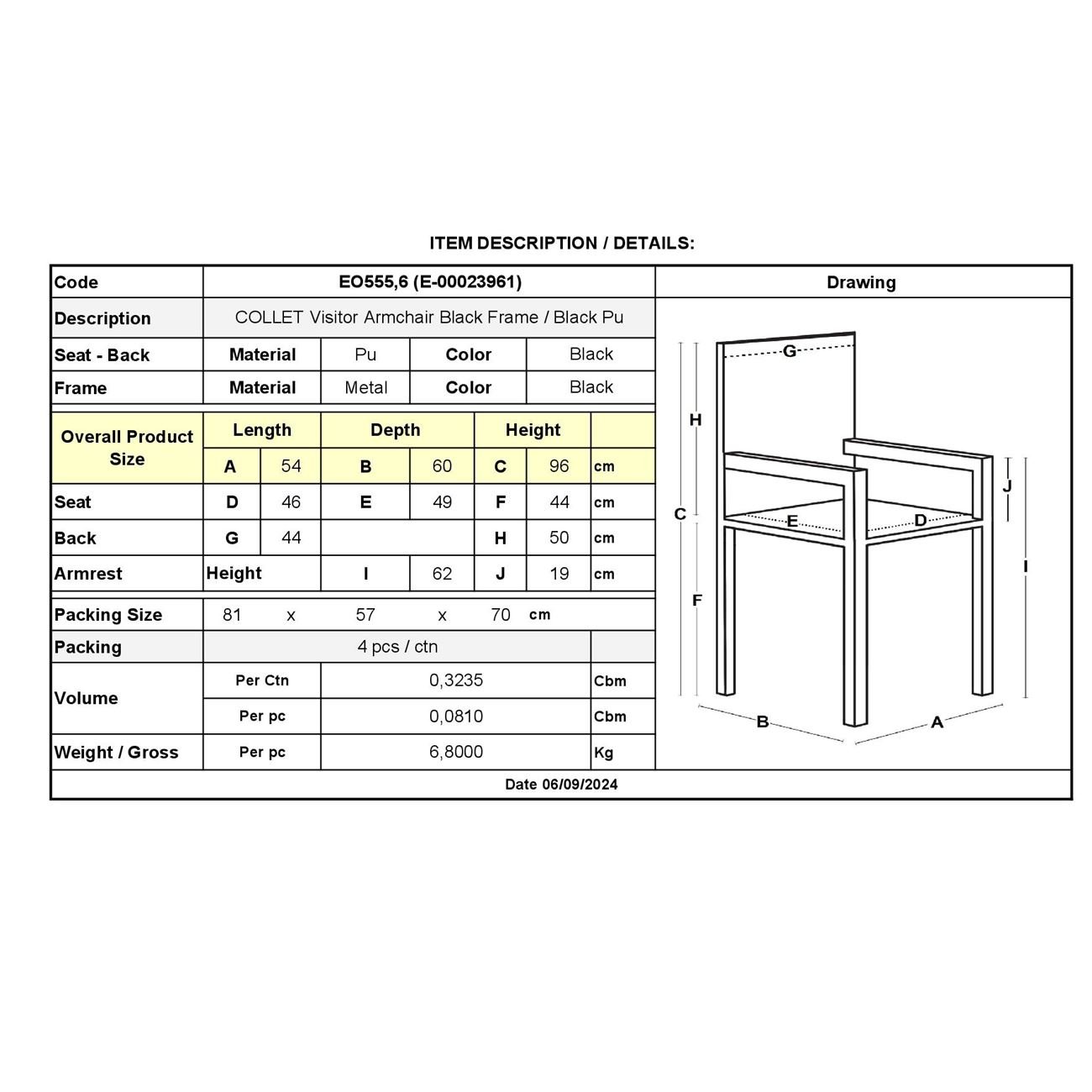 COLLET Πολυθρόνα Γραφείου Επισκέπτη Μέταλλο Μαύρο, Pu Μαύρο Ε-00023961 ΕΟ555,6 (ΣΕΤ ΤΩΝ 4)