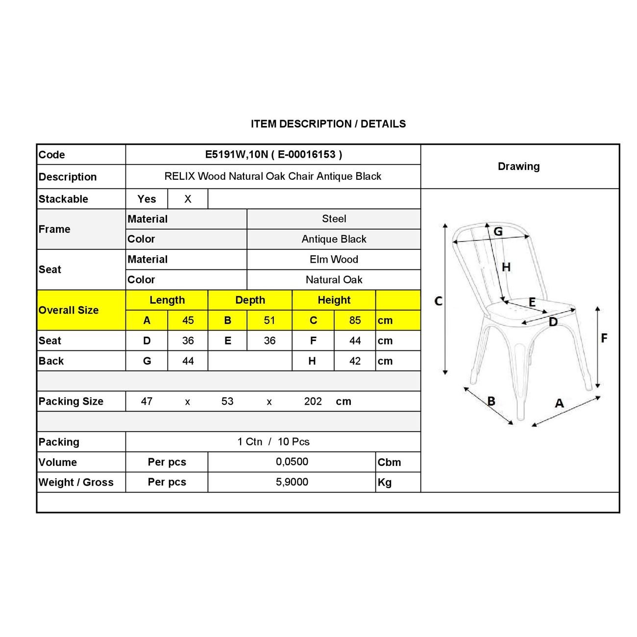 RELIX Wood Καρέκλα-Pro, Μέταλλο Βαφή Antique Black, Απόχρωση Ξύλου Natural Oak Ε-00016153 Ε5191W,10N