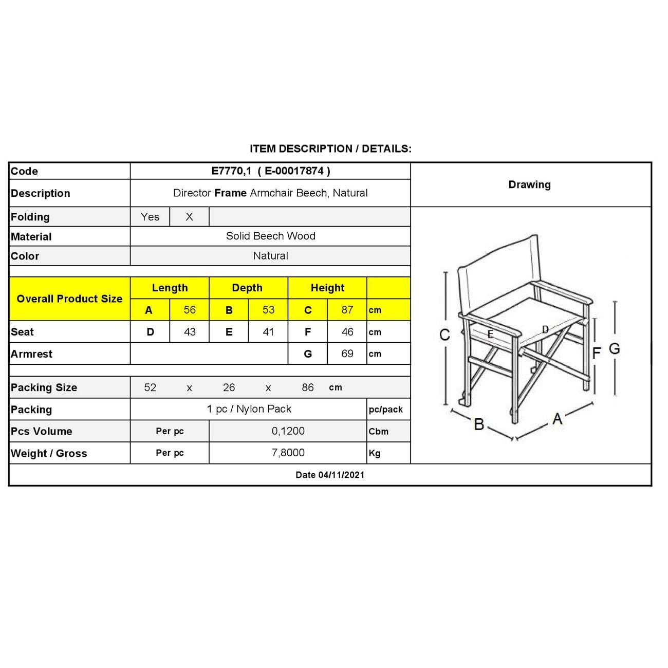 Σκηνοθέτη Σκελετός Πολυθρόνας Οξιά, Βαφή Εμποτισμού Φυσικό, Πτυσσόμενη Ε-00017874 Ε7770,1