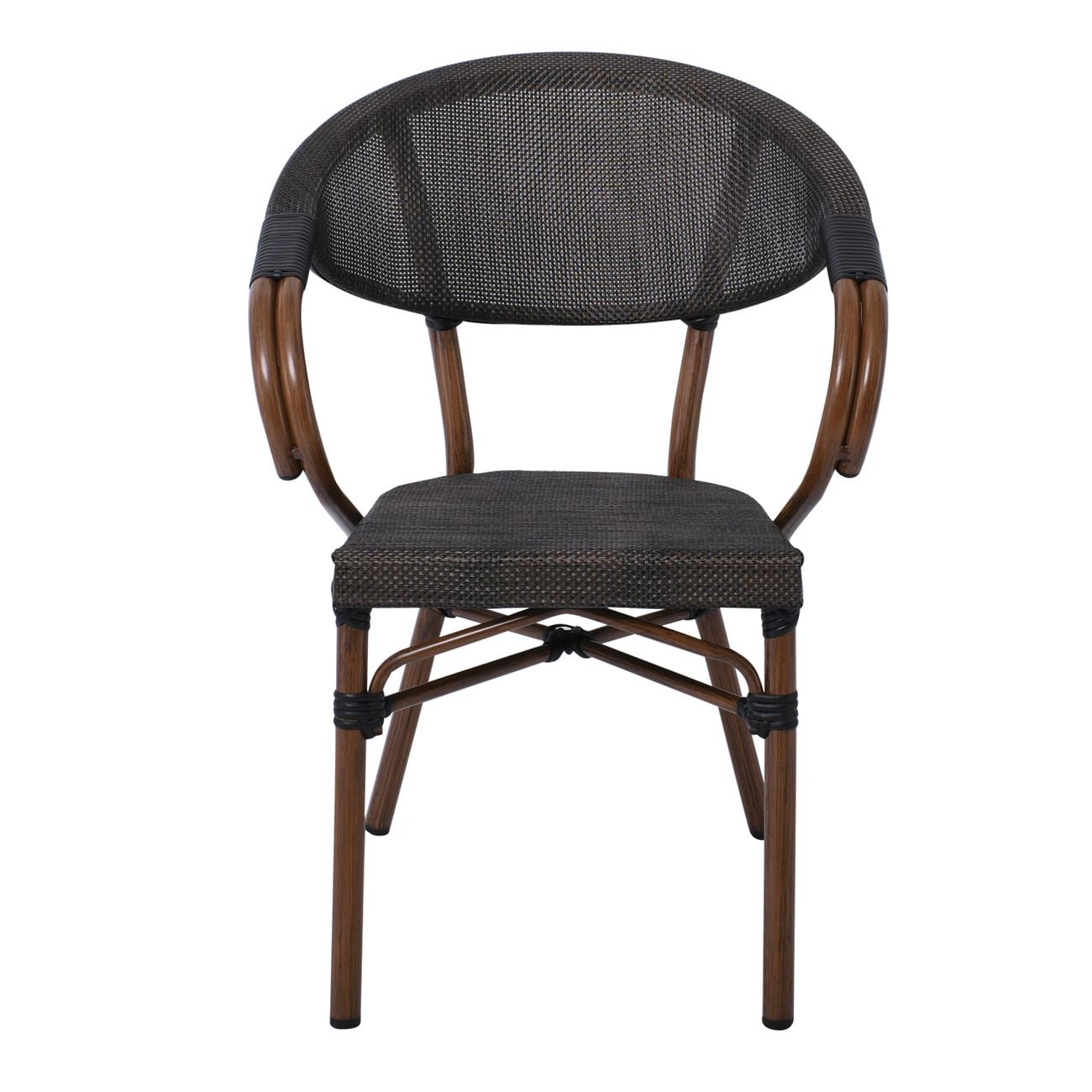 COSTA Πολυθρόνα Dining Αλουμινίου, Απόχρωση Καρυδί Textilene Μαύρο Ε-00018372 Ε286