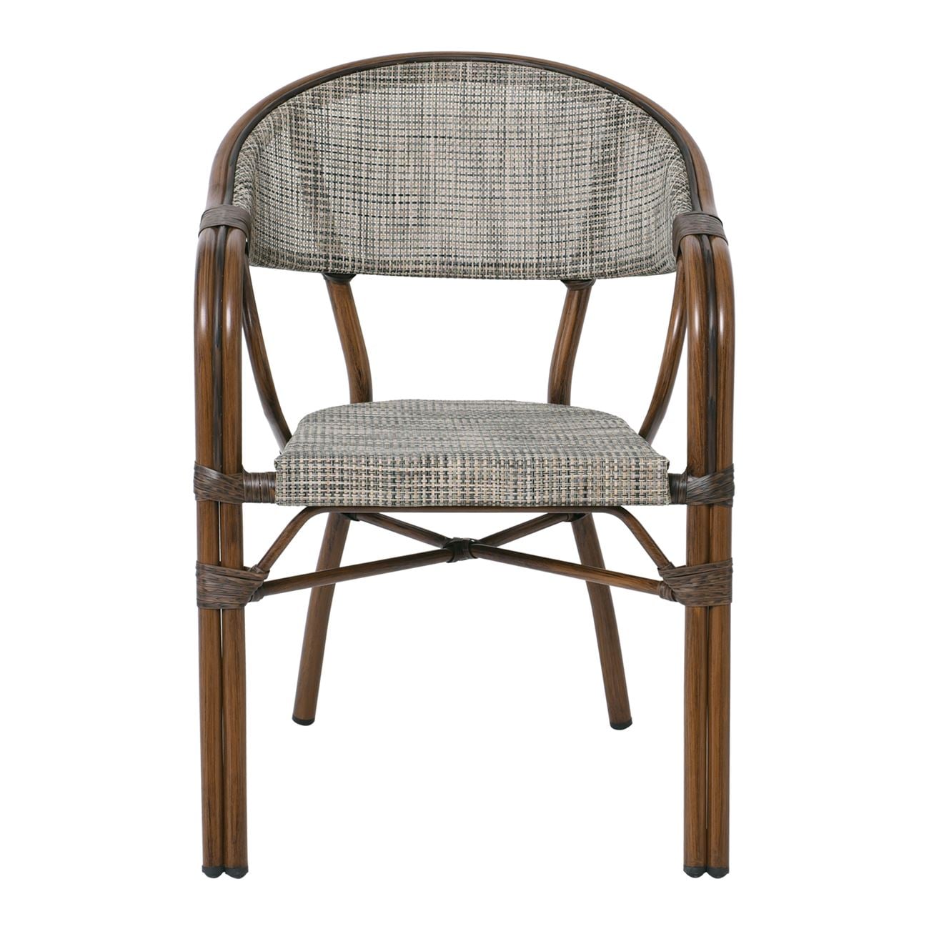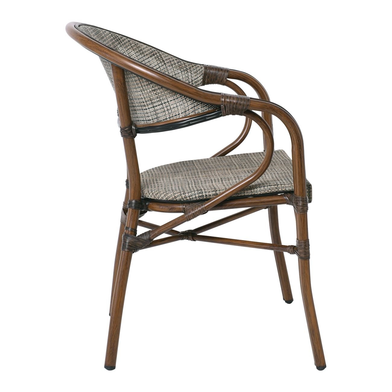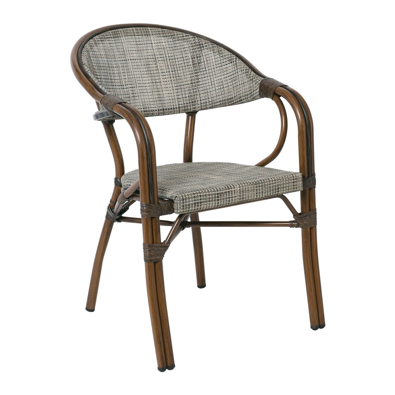 VEGERA Πολυθρόνα Dining Αλουμίνιο Βαφή Καρυδί Textilene Μπεζ, Στοιβαζόμενη Ε-00020522 Ε258,11