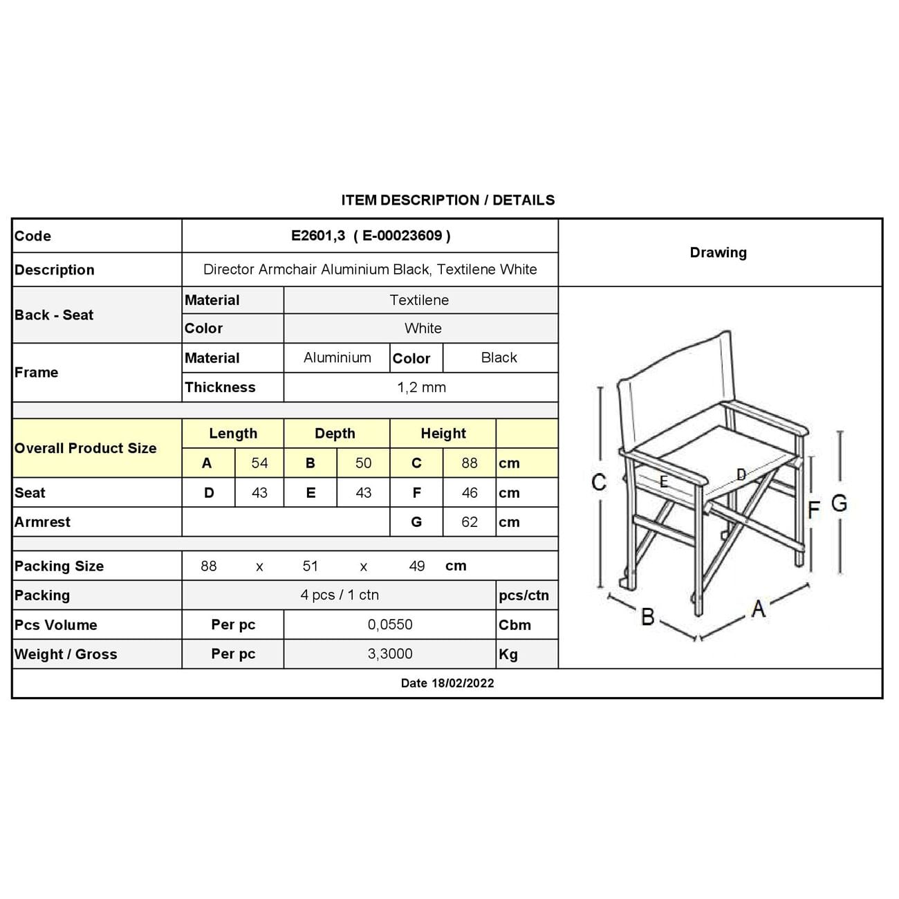 Σκηνοθέτη Πολυθρόνα, Αλουμίνιο Μαύρο (1,2mm), Textilene Άσπρο, Πτυσσόμενη (2,75kg) Ε-00023609 Ε2601,3 (ΣΕΤ ΤΩΝ 4)