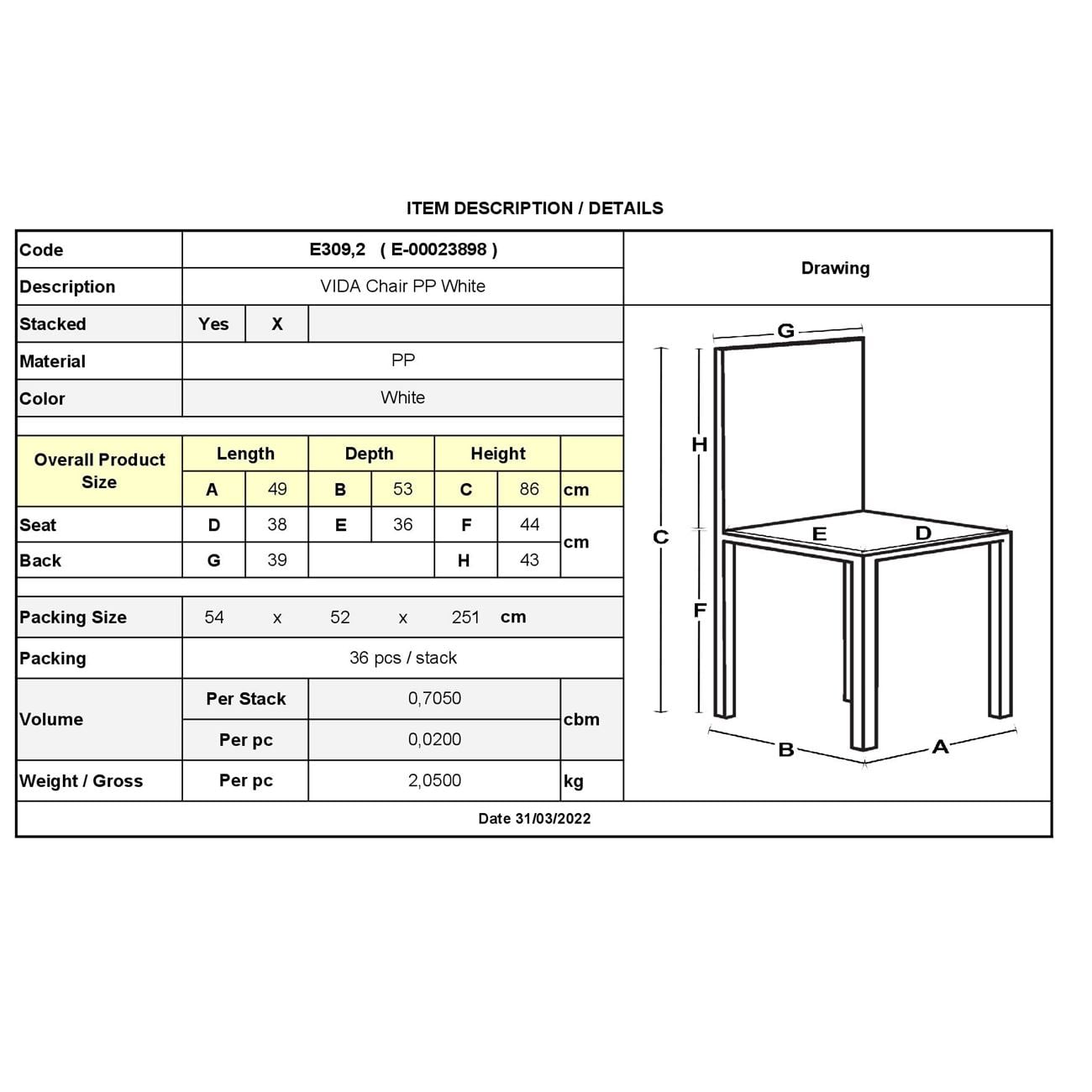 • Είδος: Καρέκλα Στοιβαζόμενη