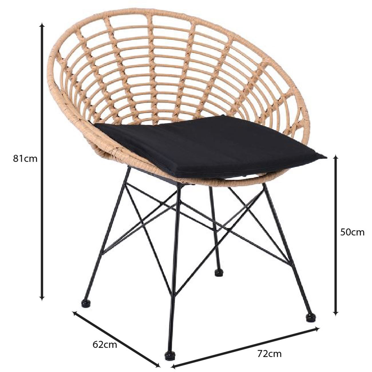 SALSA Coral Πολυθρόνα Κήπου- Τραπεζαρίας, Μέταλλο Μαύρο, Wicker Φυσικό, Μαξιλάρι Μαύρο Ε-00023932 Ε283,1
