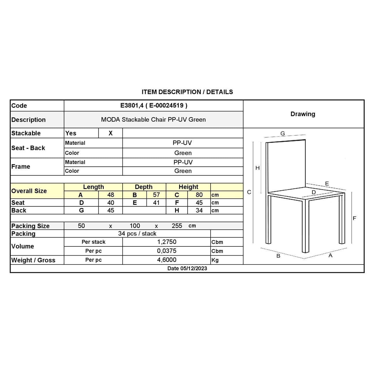 MODA Καρέκλα Στοιβαζόμενη PP - UV Πράσινο Ε-00024519 Ε3801,4