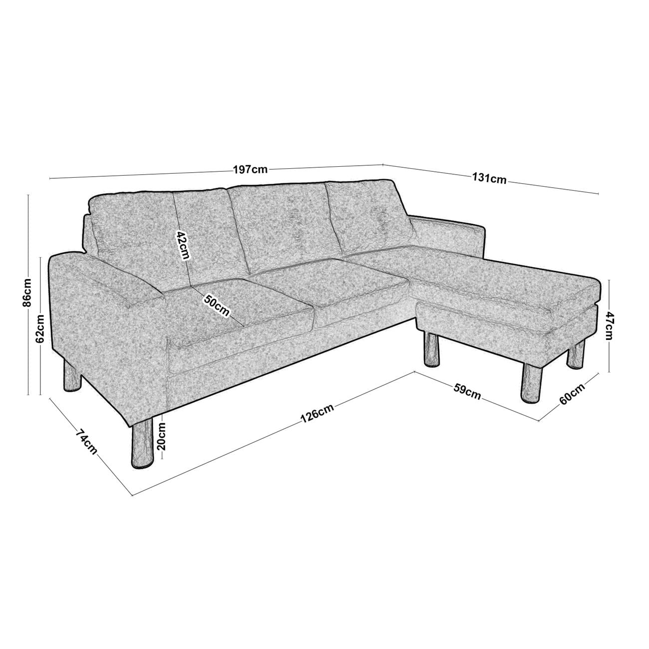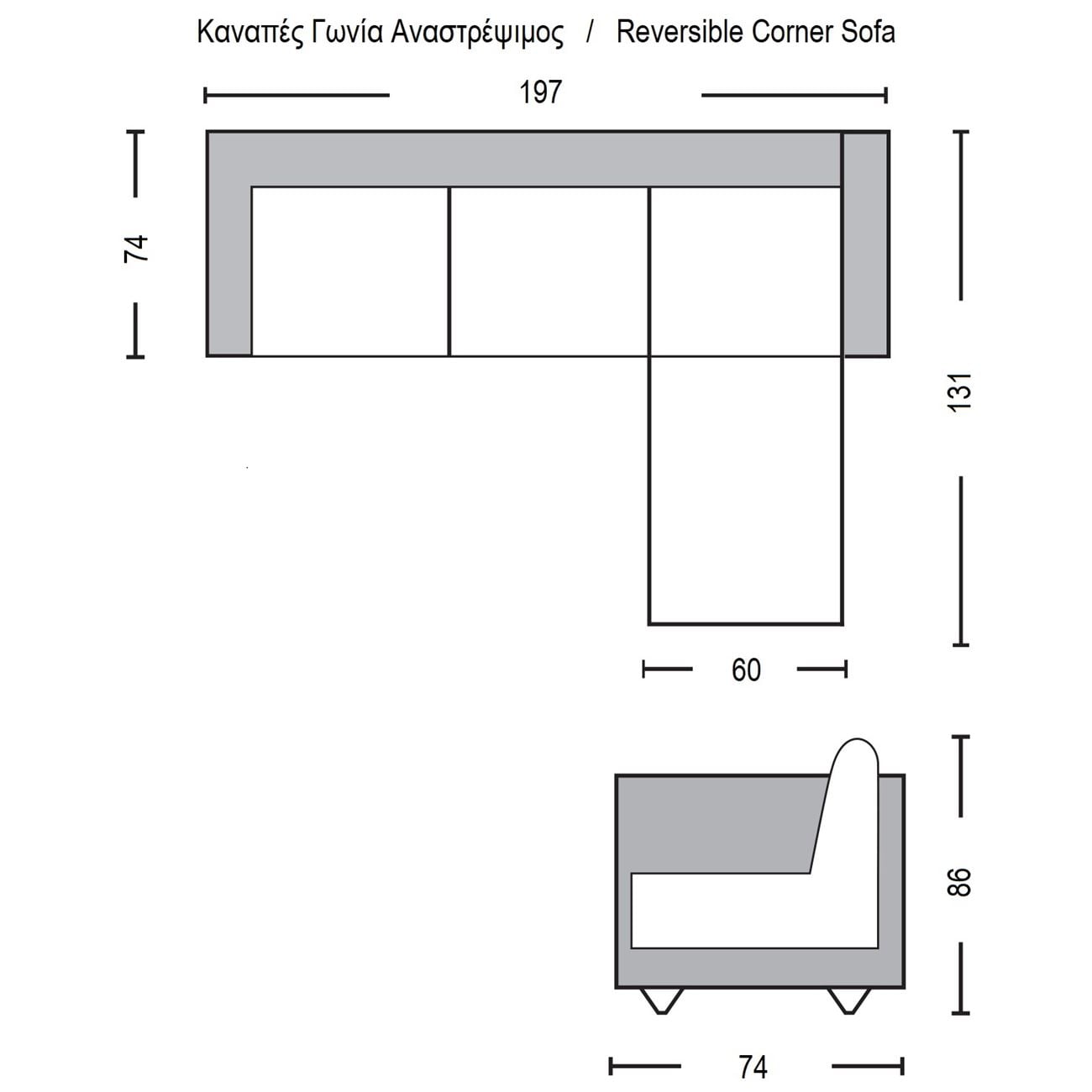 REVERSE Καναπές Σαλονιού Καθιστικού, Γωνία Αναστρέψιμος Ύφασμα Ανοιχτό Γκρι Ε-00021189 Ε9695,2