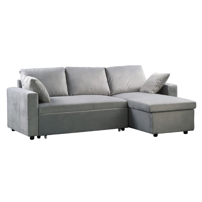 Διαθέσιμο από 4-10 ημέρεςΚαναπές-κρεβάτι με αποθηκευτικό χώρο και αναστρέψιμη γωνία, με ύφασμα Microfiber σε χρώμα Ανοιχτό Γκρι.