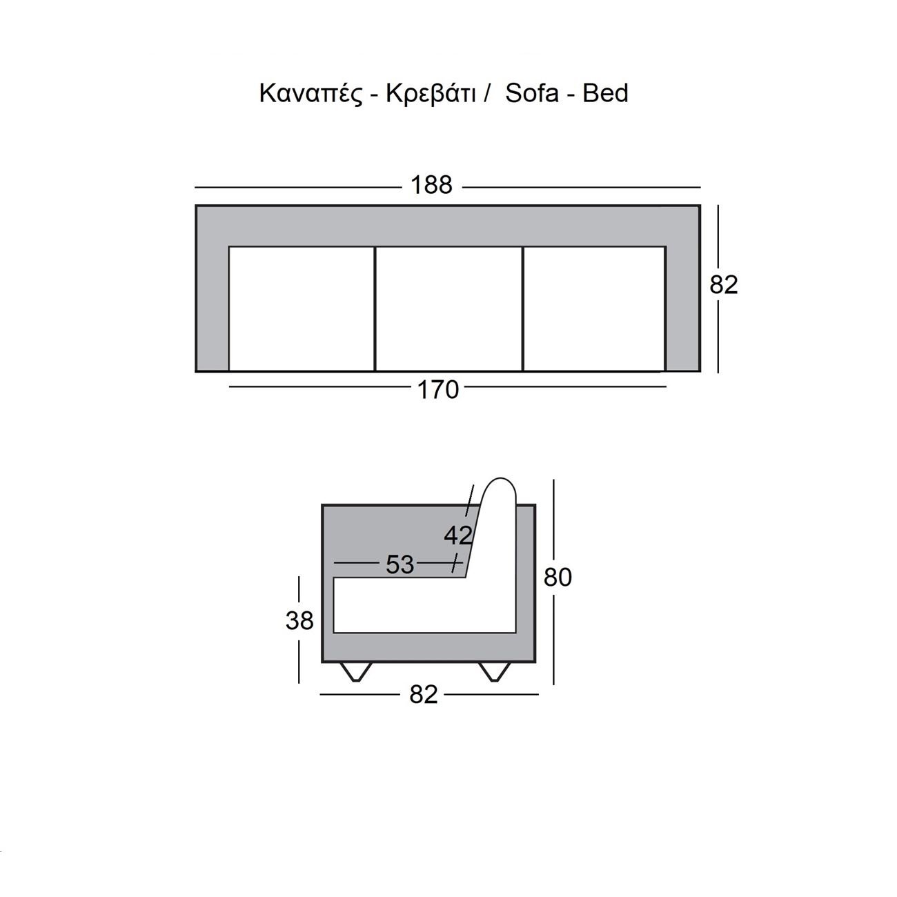 Διαστάσεις καναπέ : 188x82x80cm (ΜxΠxΥ)