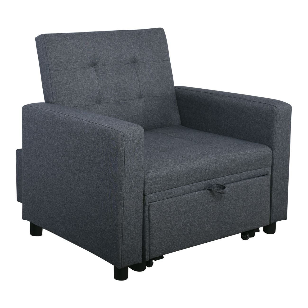 Πολυθρόνα-κρεβάτι με μπράτσα, με ύφασμα σε χρώμα Σκούρο Γκρι.