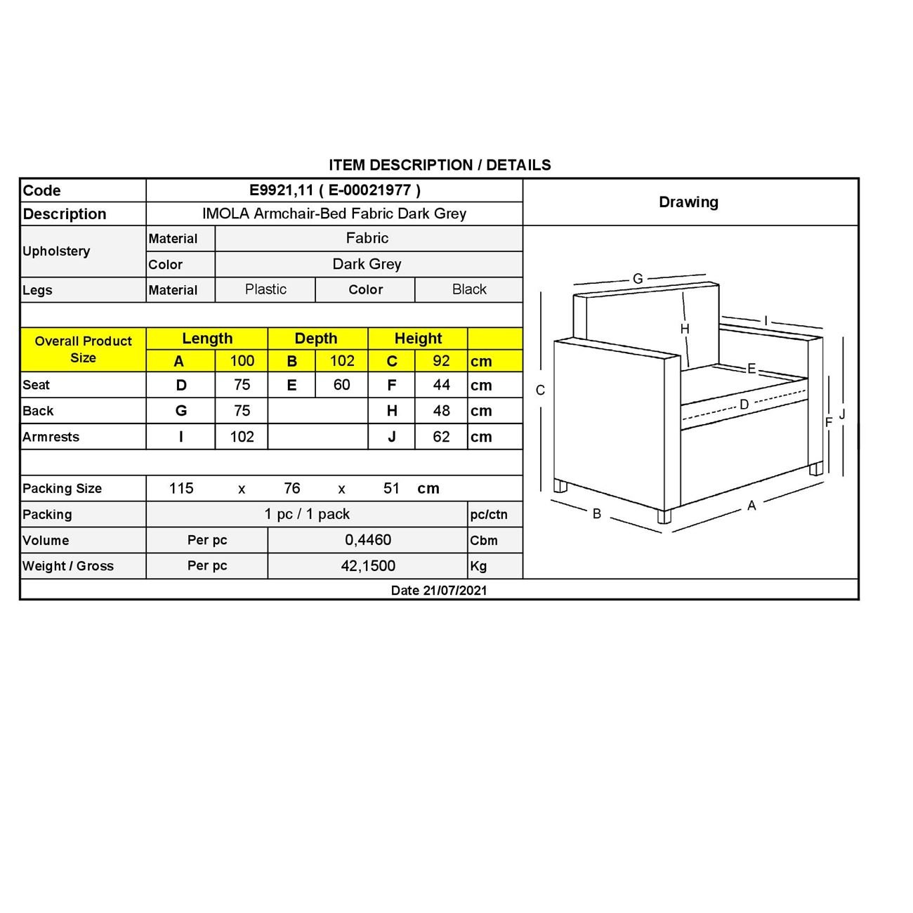 IMOLA Πολυθρόνα - Κρεβάτι Σαλονιού - Καθιστικού, Ύφασμα Σκούρο Γκρι Ε-00021977 Ε9921,11