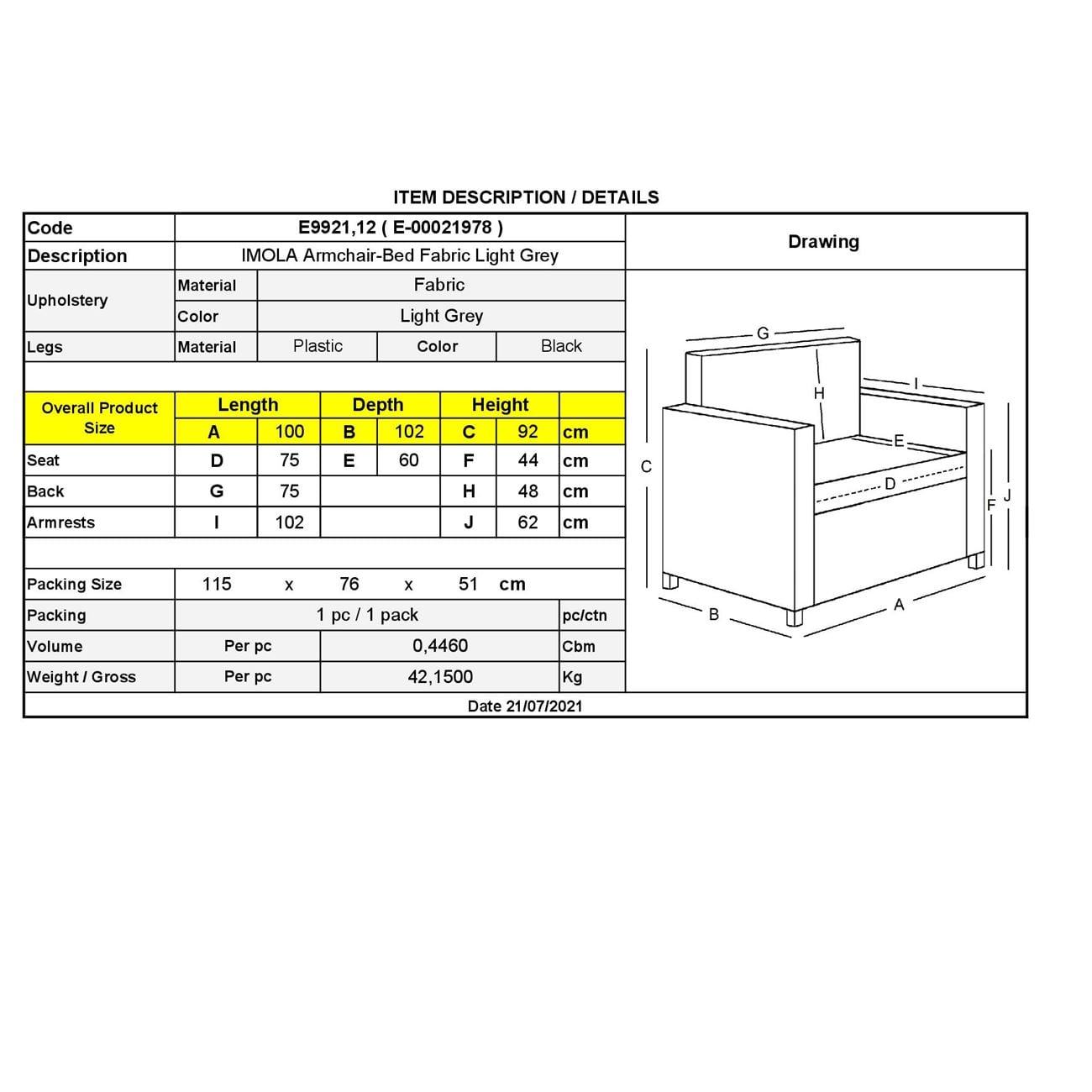 IMOLA Πολυθρόνα - Κρεβάτι Σαλονιού - Καθιστικού, Ύφασμα Ανοιχτό Γκρι Ε-00021978 Ε9921,12