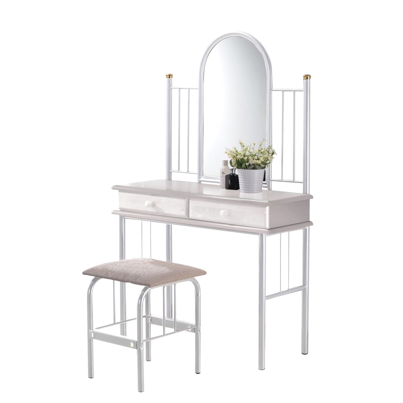 FLORA SET Τουαλέτα με Καθρέπτη + Σκαμπό 2 Συρτάρια, Μέταλλο Βαφή Άσπρο, Ξύλο Άσπρο Ε-00023333 Ε8028,1