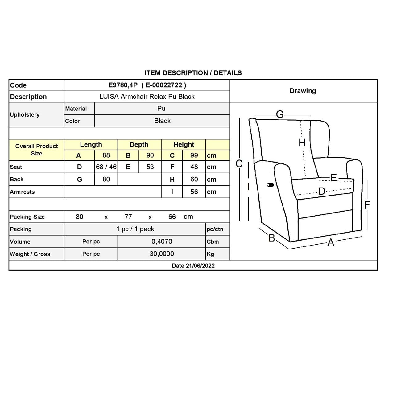 LUISA Πολυθρόνα Relax Σαλονιού - Καθιστικού Pu Μαύρο Ε-00022722 Ε9780,4P