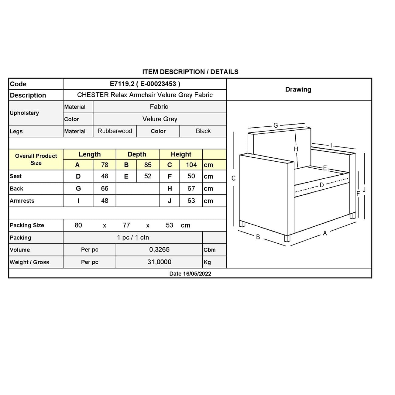 Εξωτερικές Διαστάσεις : 78x85x104cm