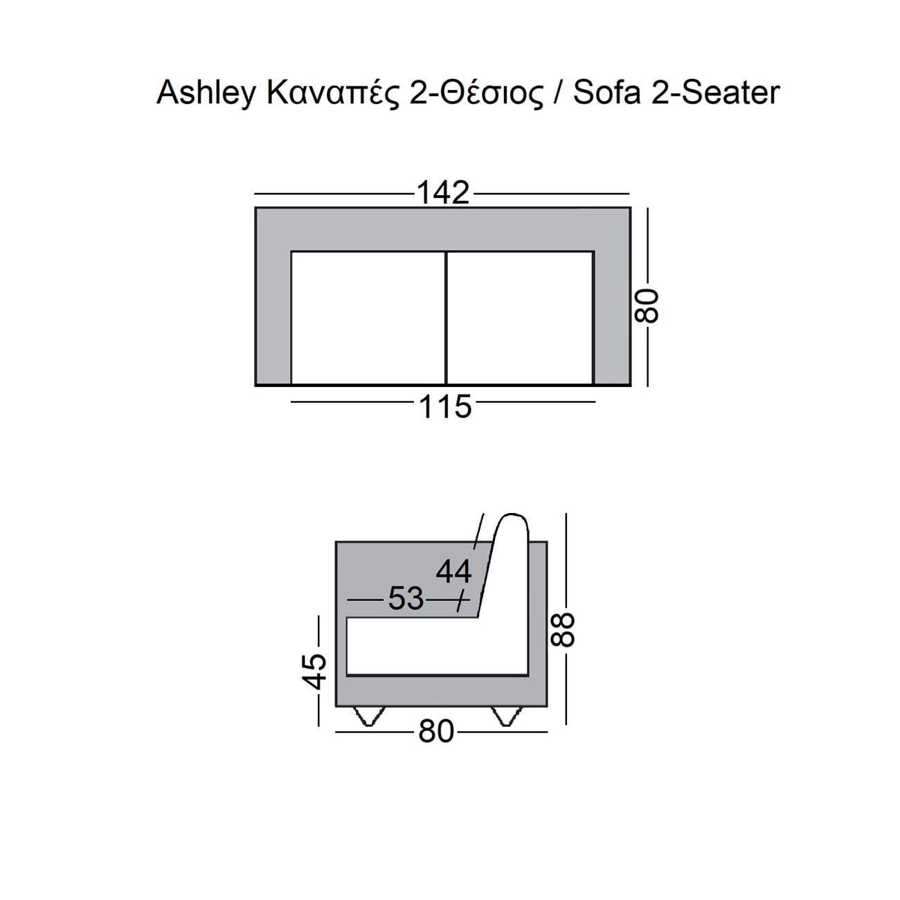 ASHLEY Καναπές Σαλονιού - Καθιστικού 2Θέσιος, Ύφασμα Μπεζ Ε-00013780 Ε986,2