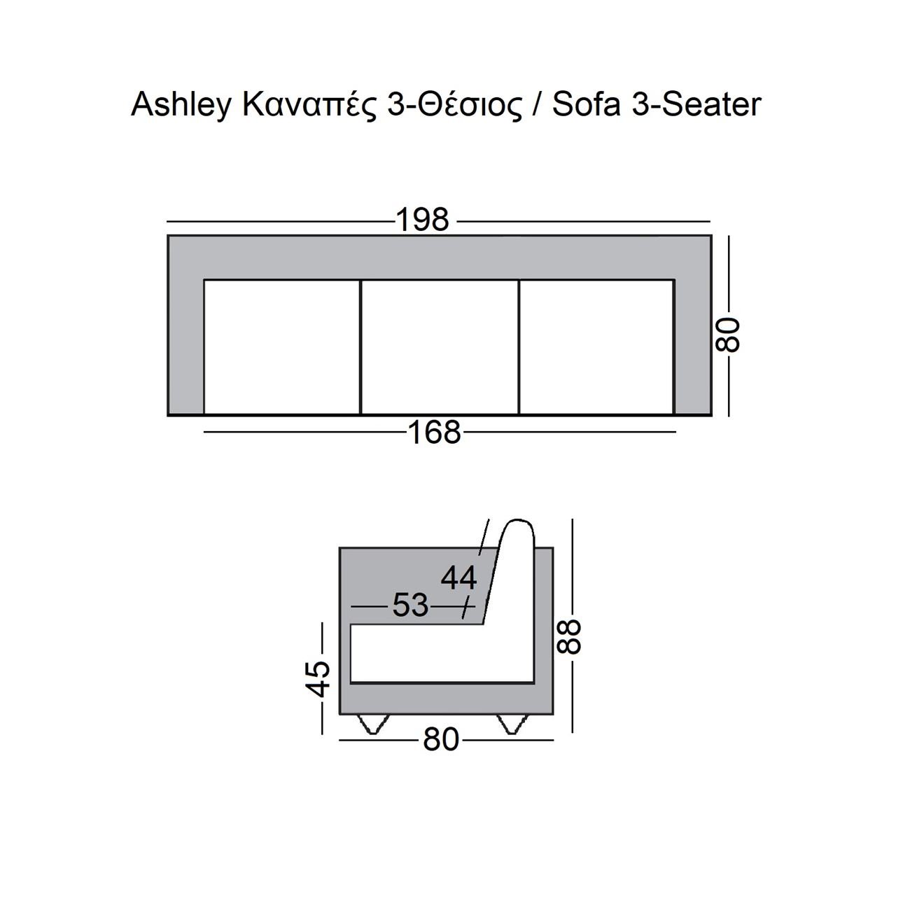 ASHLEY Καναπές Σαλονιού - Καθιστικού 3Θέσιος, Ύφασμα Μπεζ Ε-00013781 Ε986,3