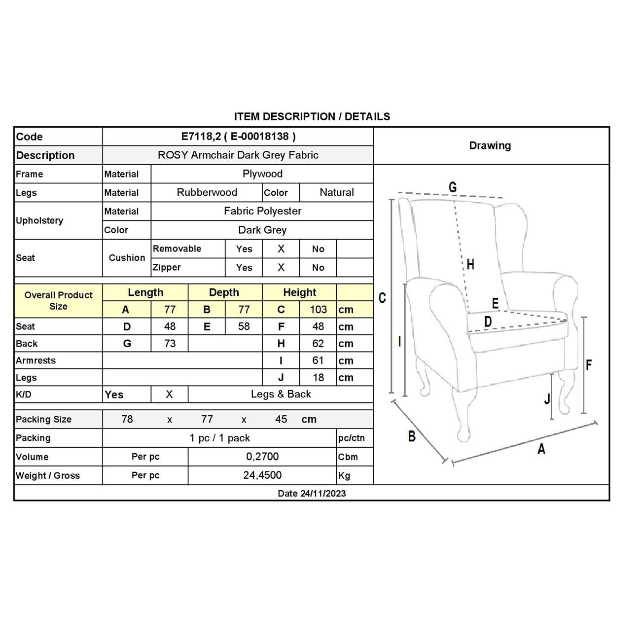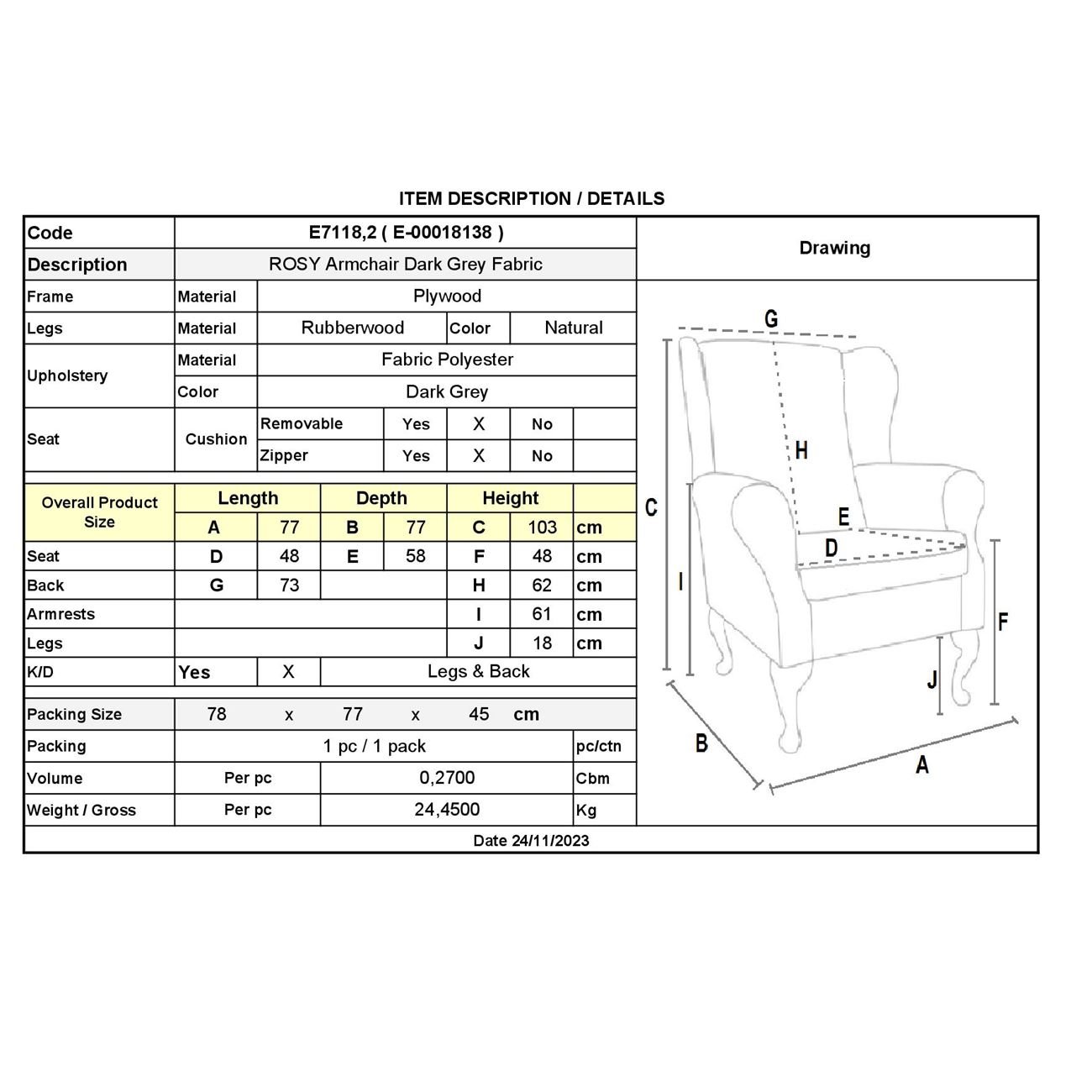 ROSY Πολυθρόνα - Μπερζέρα Φυσικό, Ύφασμα Ανθρακί Ε-00018138 Ε7118,2