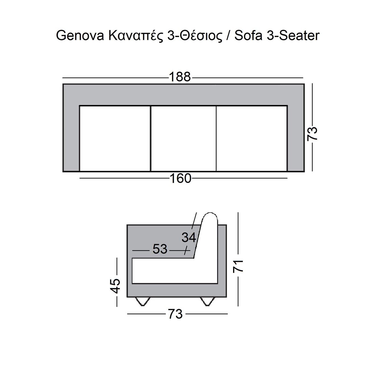 GENOVA Καναπές Σαλονιού Καθιστικού 3Θέσιος, Inox Pu Άσπρο Ε-00019302 Ε947,31