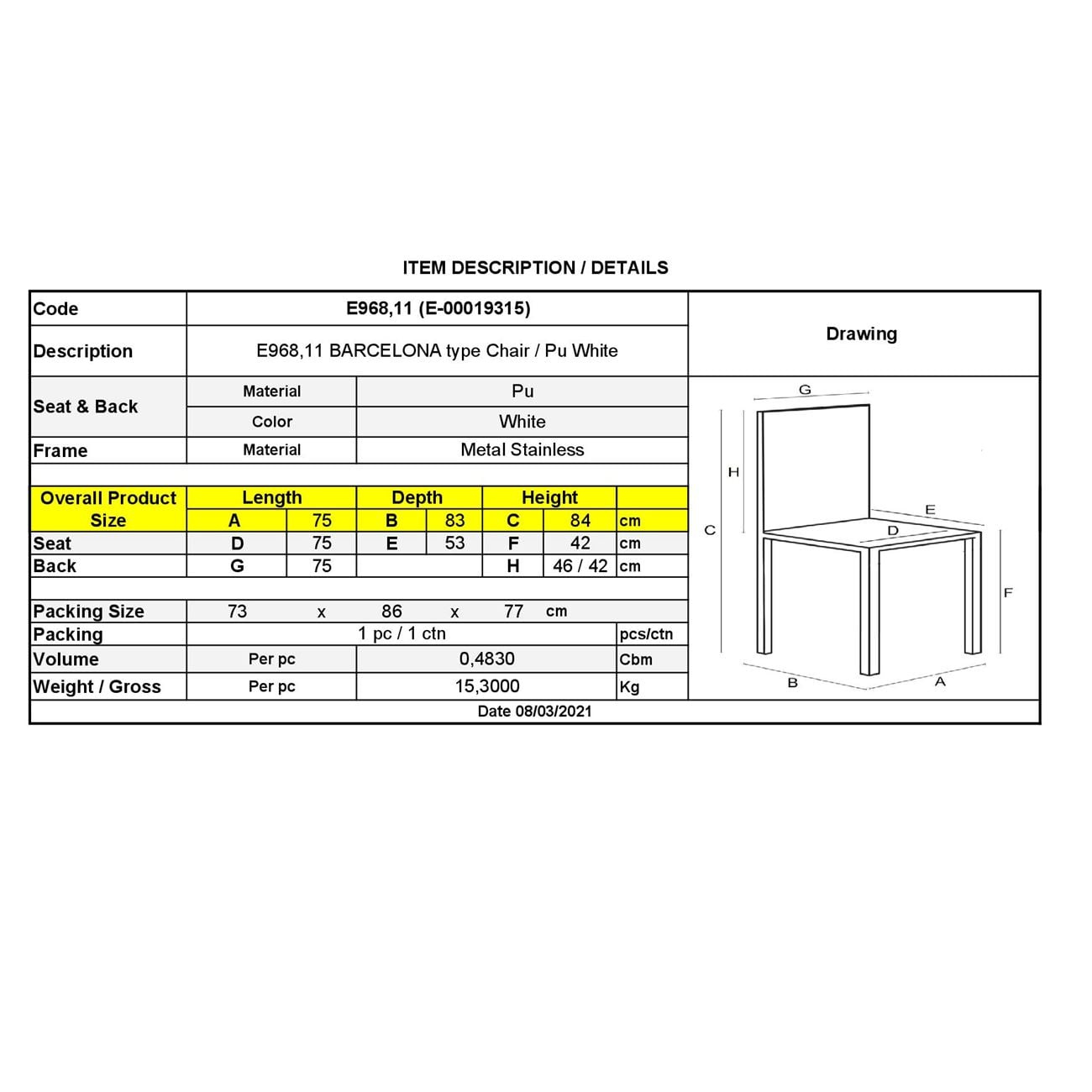 BARCELONA τ. Καρέκλα Σαλονιού Καθιστικού Inox - PU Άσπρο Ε-00019315 Ε968,11