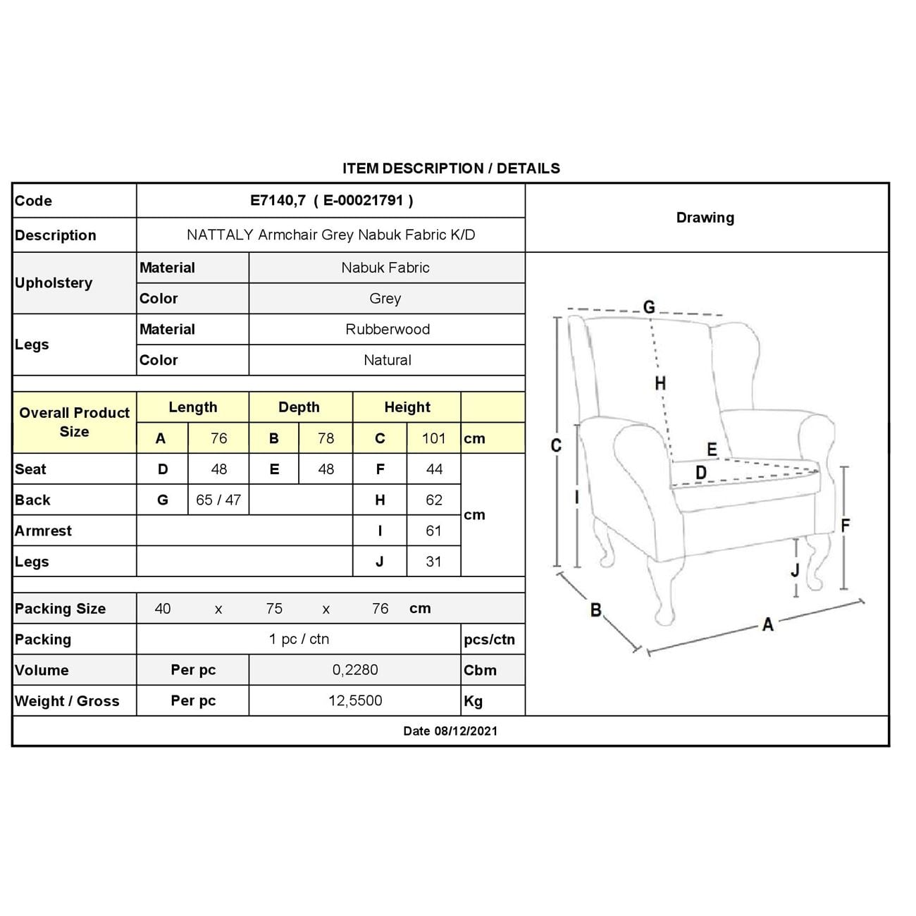 NATTALY Πολυθρόνα - Μπερζέρα K/D, Ύφασμα Nabuk Γκρι Ε-00021791 Ε7140,7