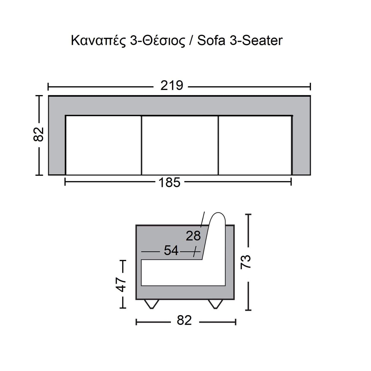 219x82x73cm