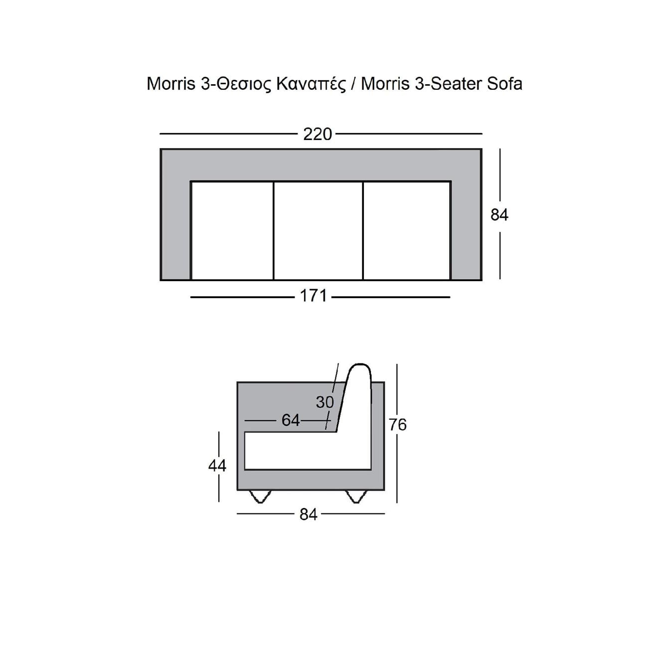 MORRIS Καναπές 3Θέσιος Σαλονιού - Καθιστικού, Ύφασμα Teddy Άσπρο Ε-00024536 Ε9600,31