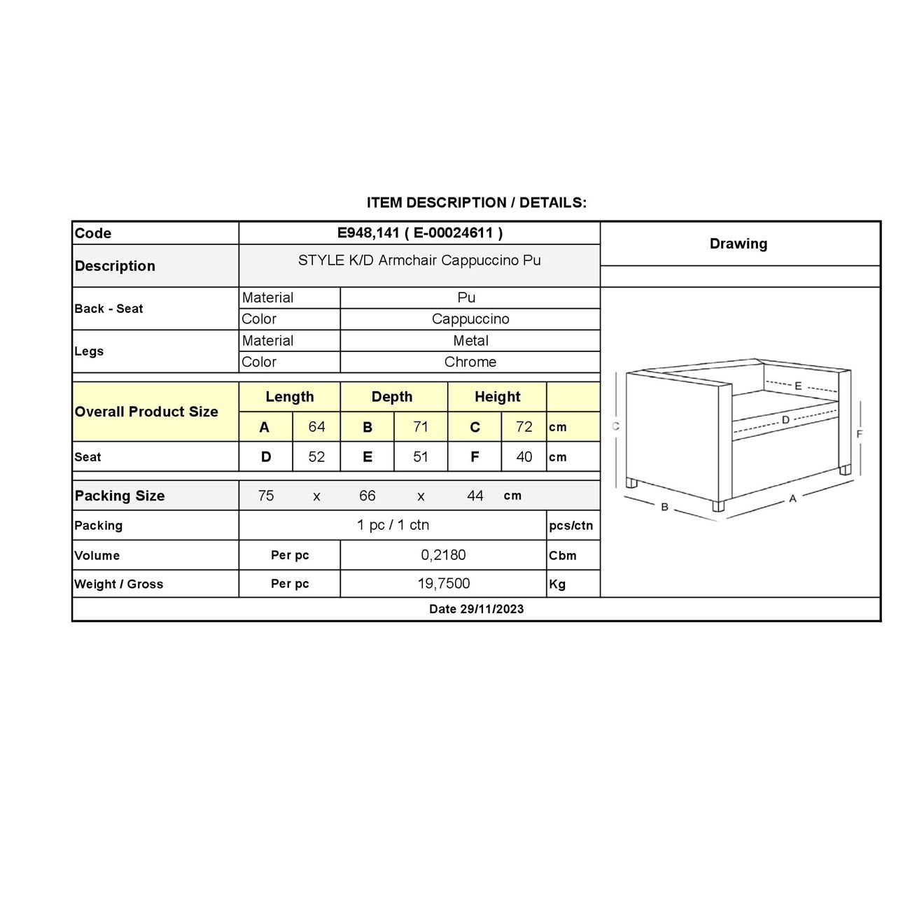 STYLE Πολυθρόνα Σαλονιού Καθιστικού, Pu Cappuccino Ε-00024611 Ε948,141